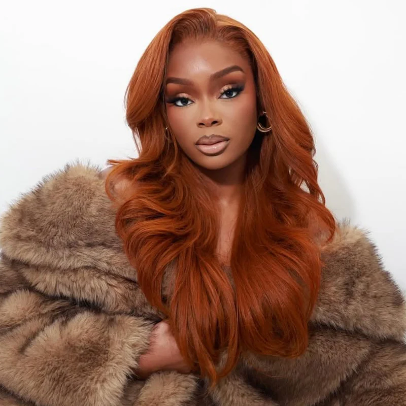 Double Drawn Hair Luxurious Copper Auburn Body Wave Glueless 13x6 Lace Front 200% Density Orange Put On And Go Human Hair Wig