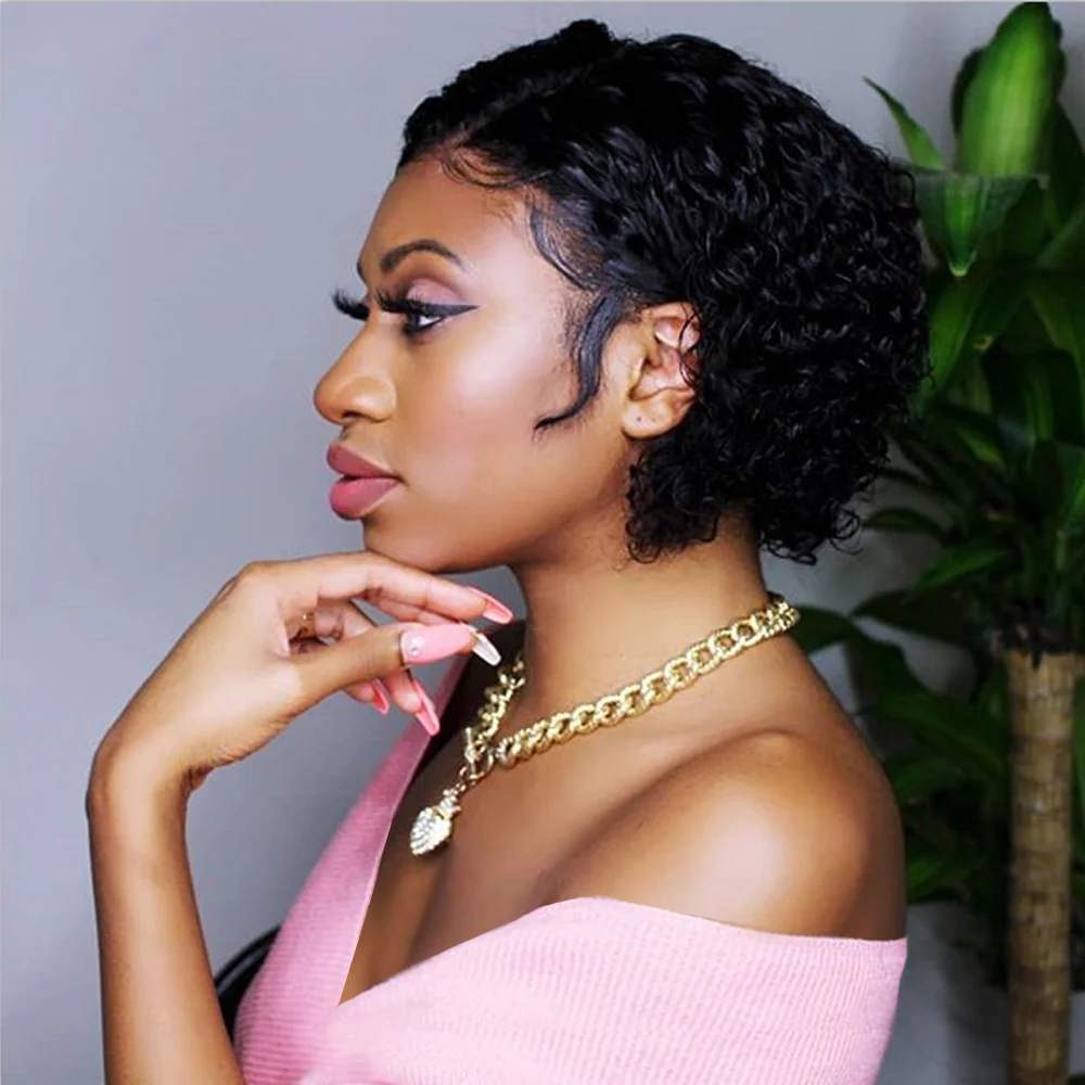 Kinky Curly Human Hair Pixie Cut Wig 4*4 Lace Closure/ T Type Lace Front Wigs Short Curly Bob-Amanda Hair