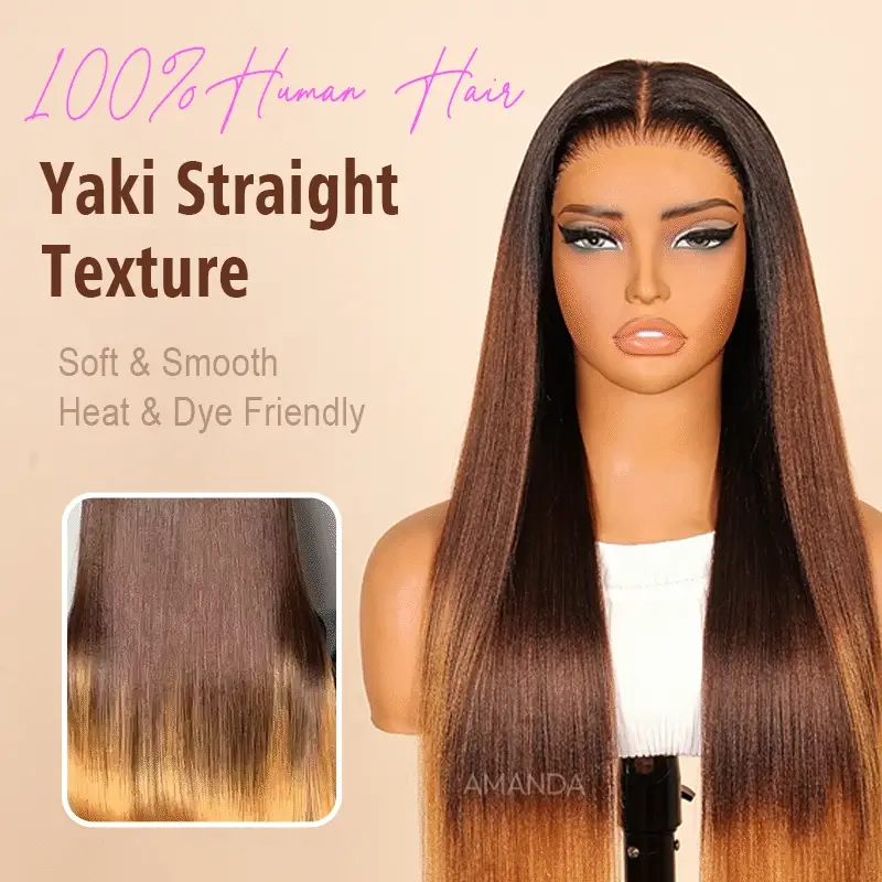 Luxury Yaki Straight 200% Density Dark Brown to Honey Blonde Ombre Color Glueless Human Hair Wig - Amanda Hair